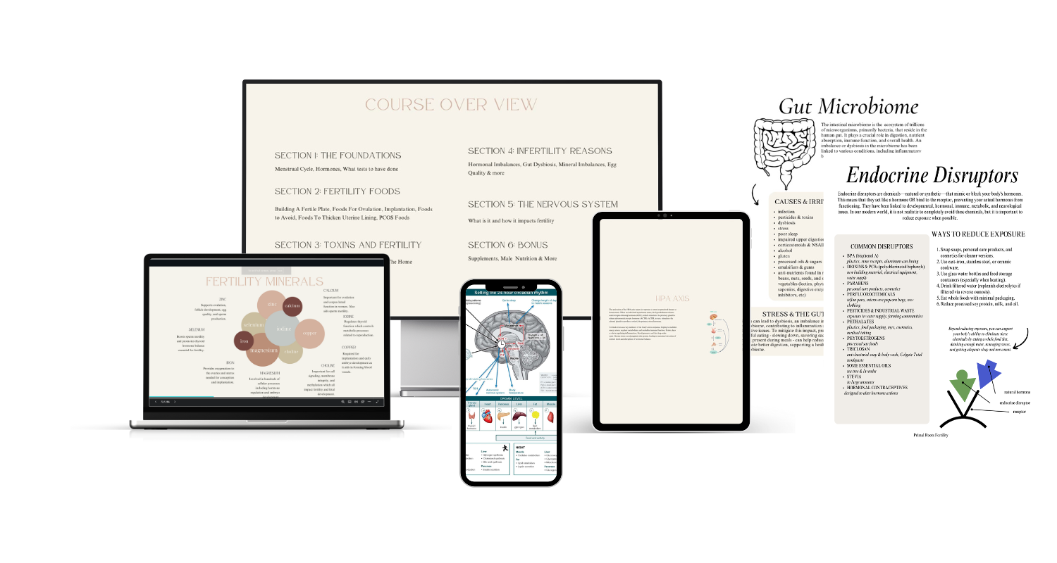 ✔ Understand how ingredients, nutrients and food interact with your body and impact your fertility, hormones and cycle.